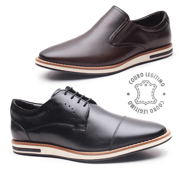 Kit 2 pares Sapatênis em Couro Preto e Café ELT - 31016PT - 31046CF