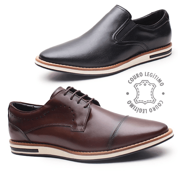 O Kit 2 pares de Sapatênis em Couro Legítimo ELT é a escolha perfeita para quem valoriza a qualidade. Com um par em café e outro em preto, estes sapatênis são ideais para qualquer ocasião. O modelo Café é super prático, com calce fácil para facilitar o seu dia a dia. Já o sapatênis Preto traz um fechamento em atacador para um ajuste perfeito. E para completar o look com muito charme, acompanha um cinto que combina perfeitamente com os sapatênis. Seja para um passeio descontraído ou uma reunião mais formal, você estará sempre bem calçado e estiloso. Não perca a oportunidade de ter esses dois pares versáteis em seu guarda-roupa!