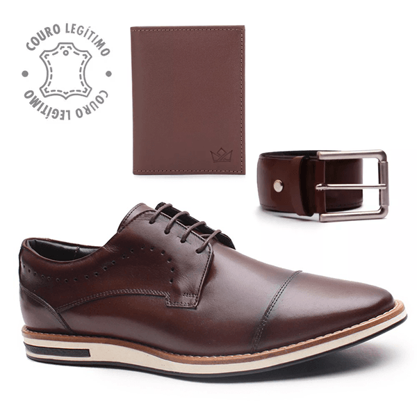 Kit Sapatênis em Couro Mogno + Cinto + Carteira - 31016MOG